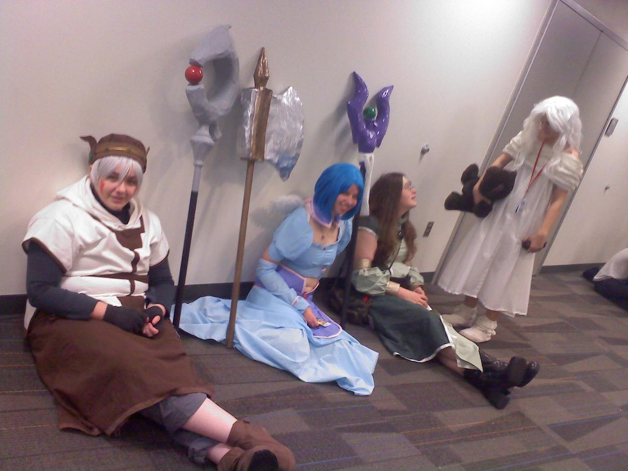 Badtz came to the con in the late afternoon. She snuck in her bag three beers which we drank in the handicapped bathroom stall. Having not eaten anything but sushi that day I got a buzz quickly. I wrote on toilet paper “Ew gross” “And who did this? Fucking Hooligans” and decorated the toilet with them. I might add that the toilet was gross when we got there. Frankly it was mighty decent of us to use the most unwanted of all the stalls. Anyway I put on Badtz wig and we both chugged away. At one point the bathroom became more crowded and then there came a smell. Badtz yelled “I’m taking a shit!” And I burst out laughing. I almost couldn’t stop. Sure the girl who was shitting was probably mortified but that sort of human thing you gotta learn to accept. We all shit. I heard you shit when you have a baby so girl deal with it.