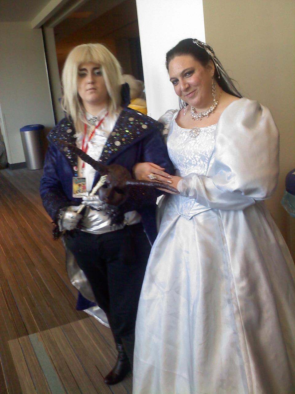 Sea-Bass lets me borrow his badge to check out the dealers room. I have maybe $5 I could spend which affords nothing there and there really wasn’t anything I wanted anyway. Who needs stuff? Anyway Sea-Bass did not have his badge on a lanyard so of course I dropped it and had to go up and down every isle looking for it in a panic. I asked the free poster table if they’d seen it and some girl saw it turned in. I had to make a rounds of the room again this time bothering every employee I saw. I did get the badge back thank goodness he’d done initials over his male name for the badge.