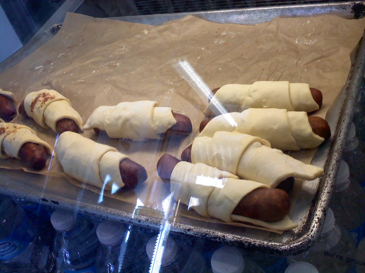 Turkey pigs in a blanket at the market. Bigger than they look too.